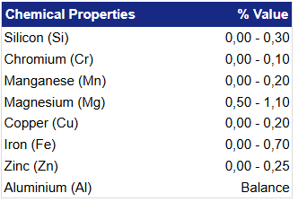 Cold Drawn Round/Flat Bar per; 5005 H18, ISO AlMg1, DIN AlMg1, WNR 3.3315, UNS A95005, ASTM B211